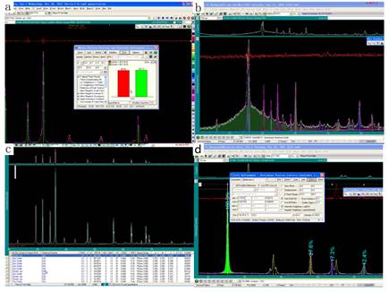 a:RRP法定量分析;b:结晶度计算;c:物相鉴定;d:TiO2的结构精修