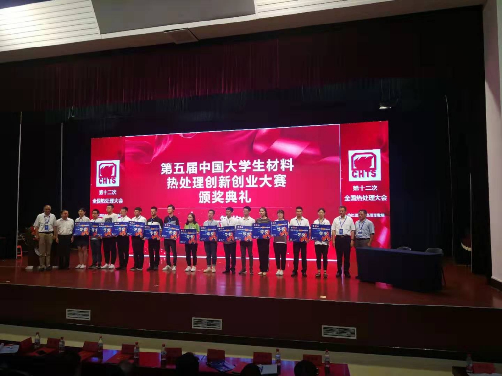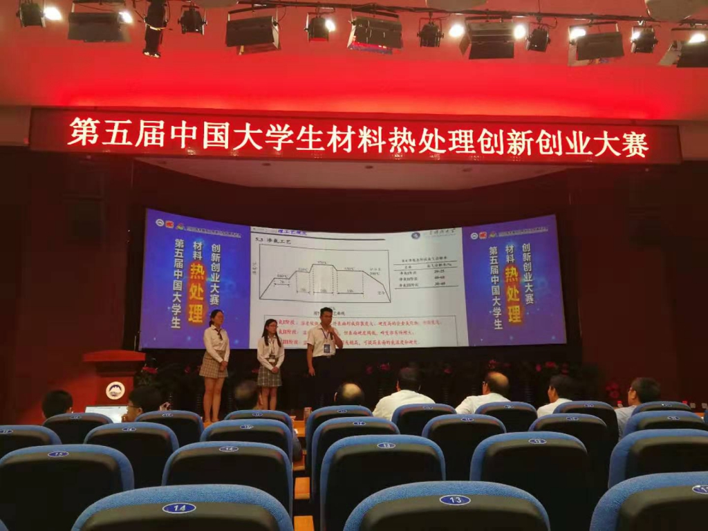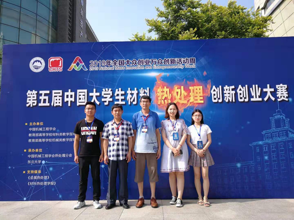 7月18-20日,由中国机械工程学会联合教育部高等学校材料类、机械类、工业工程类三个教学指导委员会共同主办的第五届中国大学生材料热处理创新创业大赛在东北大学隆重举行。我院蔡赛、江允楠、郇婕、赵政硕、郑秋月提交的作品《气体渗氮-原位还原复合热处理制备自润滑耐磨改性层研究》荣获一等奖。孙金全、李辉平获得“优秀指导教师”称号。