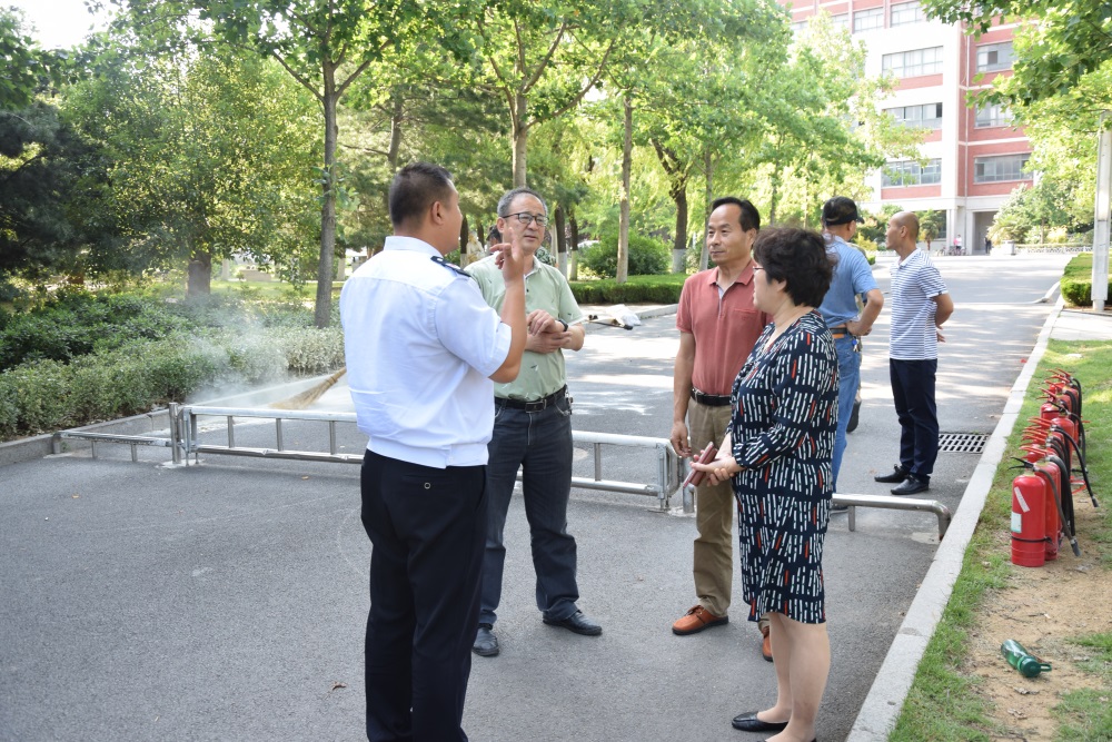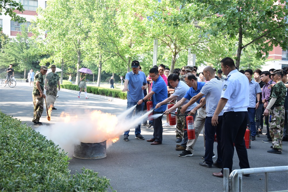 在进行消防实战演练时,王春暖强调了掌握消防技能的重要性,李灿军详细讲解了干粉灭火器和消防栓的使用方法。之后,学院师生在消防科工作人员的指导下,按照“一提二摇三拔四压五喷”的灭火步骤,完成了明火的扑灭演练。(通讯员:李坤)