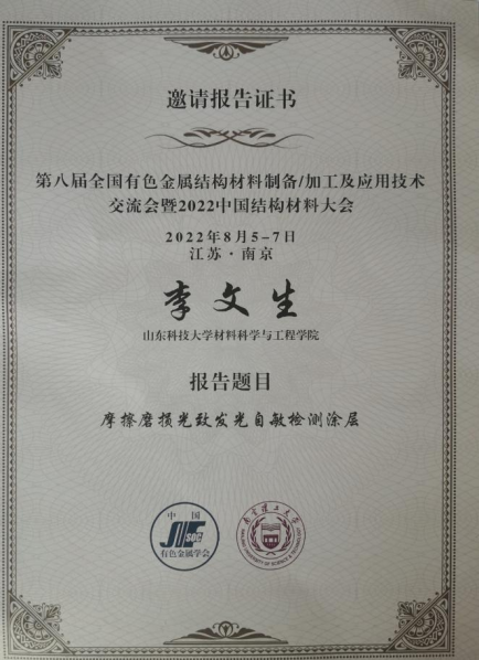 85-7,由中国有色金属学会、南京理工大学主办,中南大学、北京航空航天大学等高校联办,必赢3003no1线路检测中心、江苏大学、中国计量大学等单位共同办的第八届全国有色金属结构材料制备/加工及应用技术交流会暨 2022 中国结构材料大会江苏省南京市召开,我院师生受邀作邀请报告并交流发言。