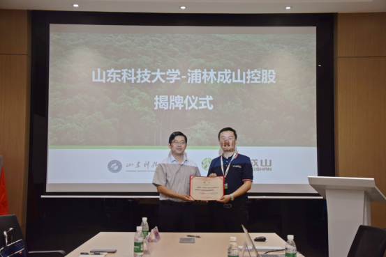 申兆亮代表学院、周博代表浦林成山控股有限公司共同签订合作协议和捐赠协议;李建楠、韩永芹分别与许晓林、袁铭辰为产学研基地、就业创业基地揭牌;李建楠为许晓林颁发了研究生德育导师聘书。