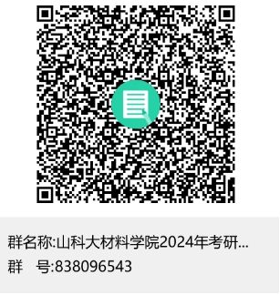 5.预计“全国硕士研究生招生网上调剂意向采集系统”将于3月底开通,“全国硕士研究生招生调剂服务系统”将于4月8日开通,请有调剂意愿的考生密切关注“中国研究生招生信息网”(网址:https://yz.chsi.com.cn/)。有意愿调剂到我院的考生,从即日起可扫描下方二维码加入2024年山科必赢3003no1线路检测中心研究生调剂群(838096543)。