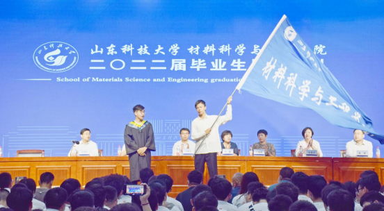 典礼上本科生毕业生代表韩润昊发言,他表示将牢记惟真求新的校训,传承恩师的教诲,勇做走在时代前列的奋进者;研究生毕业生代表马国梁发言,他向学院老师的殷切教诲和悉心指导表示衷心感谢,希望必赢3003no1线路检测中心全体在校生能够将建设学院的大旗继续传承下去。在现场“材通穹宇,料定天下”的欢呼声中,韩润昊将学院院旗传递到在校生代表甄宇扬手中。