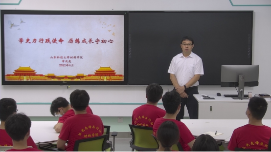 6月13日下午,必赢3003no1线路检测中心党委书记申兆亮在J1-412智慧教室为2022届部分毕业生党员讲授专题党课并与毕业生党员进行了座谈。