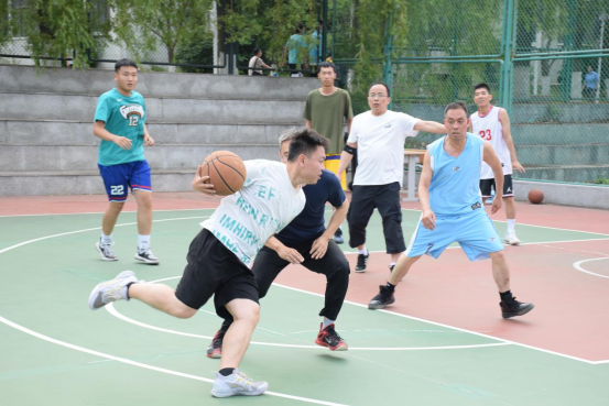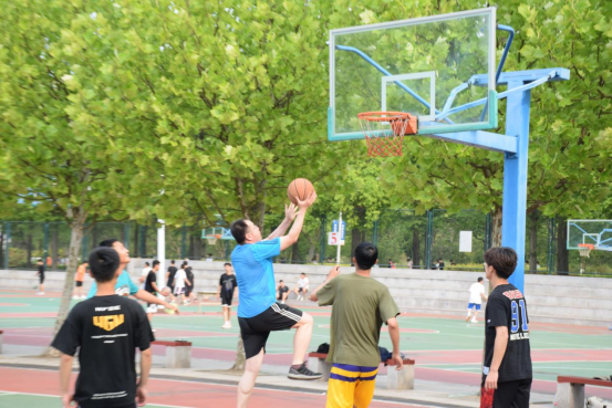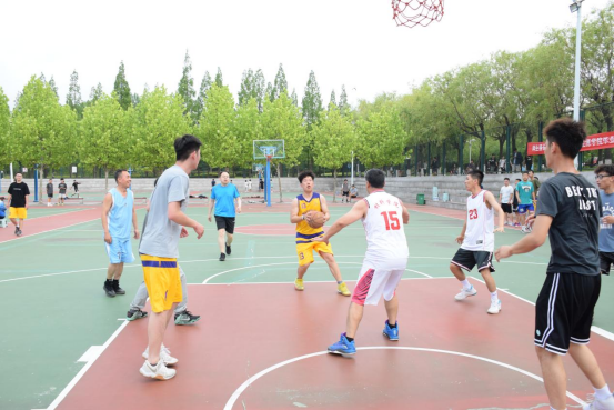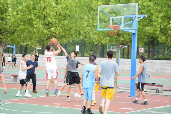 比赛采取21分制,比赛开始本科生学生队通过更加出色的身体素质以21:19的微弱优势率先拿下一城;接下来第二局老师队凭借着出色的篮球技巧、稳健的中投以22:12轻松赢下;第三局老师队与研究生队的对局也同样精彩,最终研究生队以21:18分数艰难取胜。三局战罢,老师同学们意犹未尽,又接连进行了多场不计分对局,老师学生你来我往。最终由于时间的限制,在鏖战2个小时后,结束了球赛。赛后全体师生进行了合影留念。