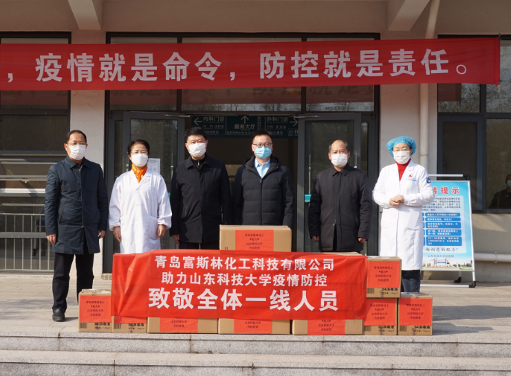 3月4日下午,我院高分子与材料化学系主任王忠卫教授创办企业——青岛富斯林化工科技有限公司向学校捐赠了一批防疫物资,用于支持学校防控疫情工作。