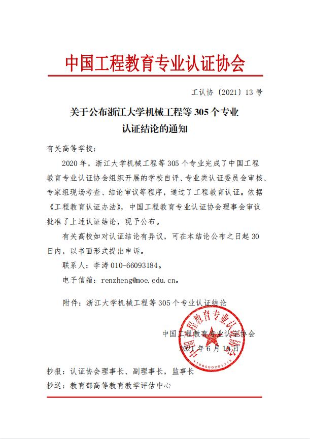 近日,中国工程教育专业认证协会正式发布《关于公布浙江大学机械工程等305个专业认证结论的通知》(工认协﹝2021﹞13号),公布了2020年全国工程教育专业认证的认证结论。我院金属材料工程专业顺利通过认证,有效期6年,自2021年1月至2026年12月。
