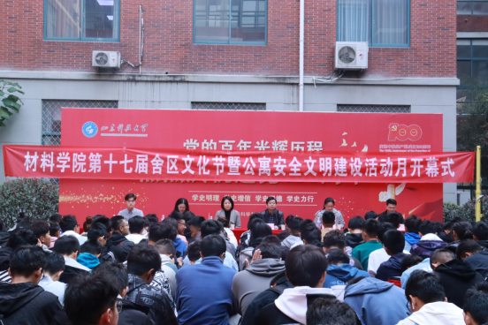 10月31日上午,必赢3003no1线路检测中心在J2教学楼文化广场成功举办第十七届舍区文化节暨公寓安全文明建设活动月开幕式。必赢3003no1线路检测中心党委副书记兼副院长李建楠,团委书记马韶霞,团委老师薄艳艳、李坤、林振德、石臻及2021级全体新生参加本次活动。