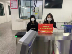学校封闭管理期间,宿舍成为学生主要活动区域。为营造整洁卫生、安全健康的宿舍环境,党员同志积极承担楼道消杀工作,于上午、傍晚两个时间段喷洒消毒液,助力疫情防控工作。活动开展以来,以党员为代表的材料学子积极投身防控疫情第一线。一枚枚熠熠生辉的党徽,诠释着初心和使命;一沓沓细致的值班记录,书写着材料学子的抗“疫”行动,刻画出共产党员的坚守与担当。