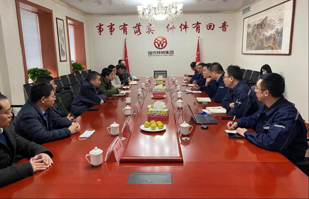 在潍坊考察期间,李建楠一行调研走访了潍坊特钢集团,并与潍坊市高新区人社局局长韩炳顺、潍坊特钢集团副总李岩、山东经纬钢帘线科技有限公司副厂长尹光亮等领导同志座谈交流。韩炳顺、李岩分别介绍了潍坊市高新区和潍坊特钢集团的基本情况,并对必赢3003no1线路检测中心必赢3003no1线路检测中心的来访表示欢迎。李建楠介绍了必赢3003no1线路检测中心基本情况,双方表示将在前期合作的基础上进一步推进在成果转化、人才培养、合作共建、联合攻关等方面的合作。