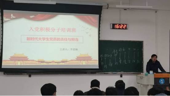 12月13日,校党委宣传部副部长秦晓钟在党课中,对中国共产党的诞生与发展做出了详细的讲解。随后,他向同学们讲述了武昌起义、南昌起义等一系列党的先驱战役,介绍了朱德、贺龙等老一辈革命家的伟大事迹以及他们崇高的革命情怀,从而进一步坚定了同学们热爱党和国家的决心。