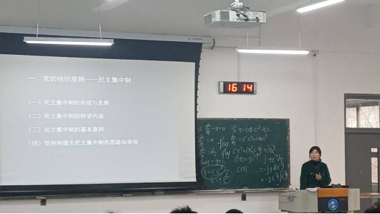 12月16日,艺术学院党委副书记兼副院长卫雪讲述了《党的根本组织原则和党的纪律》的主要内容,讲解了民主集中制的形成与发展、民主集中制的科学内涵等基本内容,阐述了民主集中制作为党的组织原则的重要意义和民主集中的辩证关系。随后,她强调,对于每一个入党积极分子都应了解党的组织原则与纪律,做自觉遵守党的组织原则和纪律的模范。