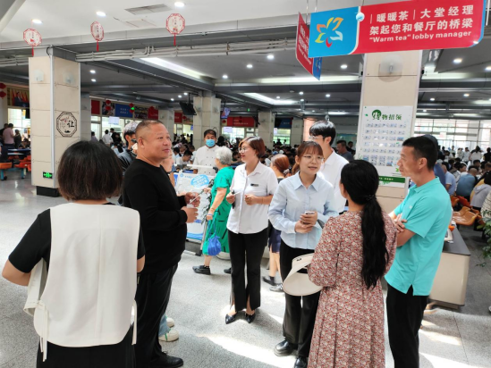 为了让家长更加深入了解学生的学习、生活环境,座谈会期间学院专门邀请了图书馆馆长崔然陪同新生家长参观了学校图书馆;座谈会后,辅导员陪同新生家长走进了学苑餐厅,参加了后勤管理处组织的“大堂经理鉴美食”活动。