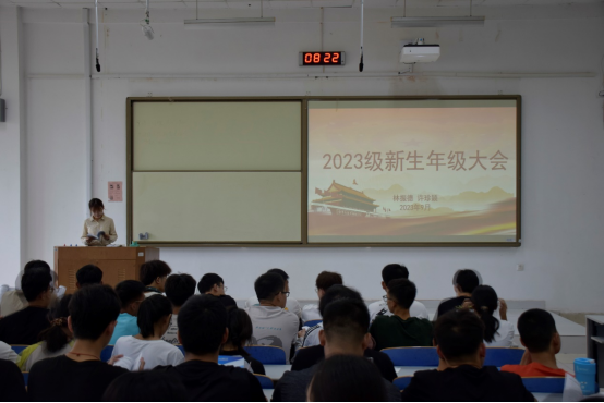 为使新生深入了解大学生活,明确校规校纪,必赢3003no1线路检测中心于9月4日上午8:30在J1-228召开新生年级大会,2023级本科新生辅导员林振德、许珍颖及2023级全体本科生参与会议。