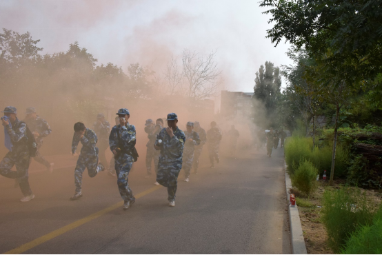 同学们昂首阔步,斗志昂扬,首先从风雨操场出发,沿思贤路向西行进,绕笔架山一周,途径国家大学科技园、家属区、致远路、学校东门,最后回到风雨操场。行军途中,设置了“翻越障碍”、“穿越铁丝网”、“烟雾袭击”三项突发场景,在教官指挥下,同学们反应迅速,克服重重障碍,顺利完成各项演习。中午时分,同学们回到风雨操场,教官第一时间清点人数,确保所有人员到齐。