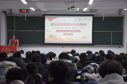 青科大化学院“忆来路,闯新程”遵义会议宣讲团成员为2023级本科生讲述了一次生动的红色文化宣讲报告。必赢3003no1线路检测中心团委辅导员王瀚琨、“红色先锋”宣讲团骨干成员、2023级全体本科生参加了本次宣讲会。