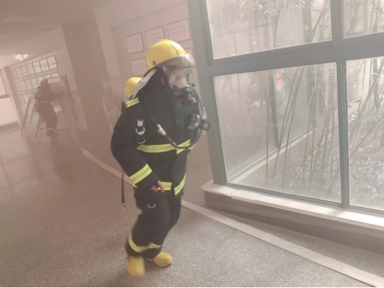 下午4点,火灾疏散逃生演练正式开始,工作人员点燃了烟雾弹,模拟真实火场。值班人员迅速排查起火点,拨打了火灾报警电话,应急疏散组老师在各楼层第一时间组织疏散教学楼内师生。全体师生按照疏散指令,以湿毛巾或衣物等捂住口鼻,按照逃生指示线路,靠右弯腰有序快速撤离,撤离到安全集合区域。消防工作人员迅速赶往火灾现场,连接水枪,及时扑灭了火情。