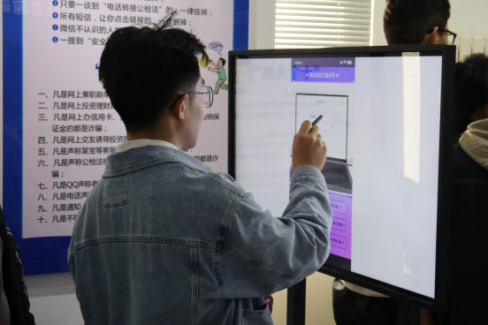 在现场,安全教育基地工作人员为学生干部们进行了安全问题的讲解,首先通过纪录短片的形式向参观人员展示了安全教育基地的形成和发展定位,并向大家介绍了国家安全广泛而深刻的含义及其重要性。随后讲解员依次讲解了电信诈骗的危害及防护、毒品危害和认识、实验室安全、交通安全、火灾安全知识以及急救知识。