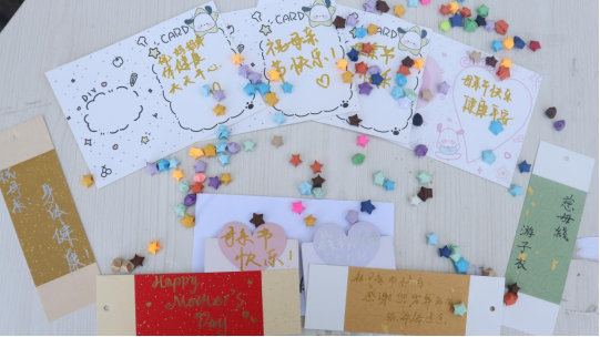 本次活动共分为叠星星、写贺卡和猜歌名三个部分。首先,同学们通过叠代表美好祝愿的星星以表达对母亲的感恩之情。接着同学们将自己与母亲的感人经历或祝福语写在贺卡上,以表达祝福之意。最后是猜歌名部分,同学们聆听有关歌颂母亲的歌曲并尝试说出歌名,以此来感受母爱的伟大。无论是现场的工作人员还是前来参与活动的同学,心中都充满着对母亲深切的祝福和不尽的感激。活动过程有序进行,同学们积极配合,活动宣告圆满结束。