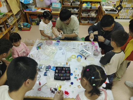 在指导老师和志愿者的帮助下,孩子们逐渐了解了滴胶艺术的基本技巧和创作流程。通过实践操作,他们学习如何将不同颜色的滴胶液体倒入模具中,创造出独一无二的艺术品。过程中,孩子们展现出了较高的热情和创造力。他们在选择颜色和模具时充满好奇,不断尝试新的组合方式。此外,志愿者们给小朋友们制作了色彩斑斓的干花滴胶标本,让小朋友们爱不释手。通过这样的活动,孩子们在享受创作乐趣的同时,也在不知不觉中提升了解决问题的能力。