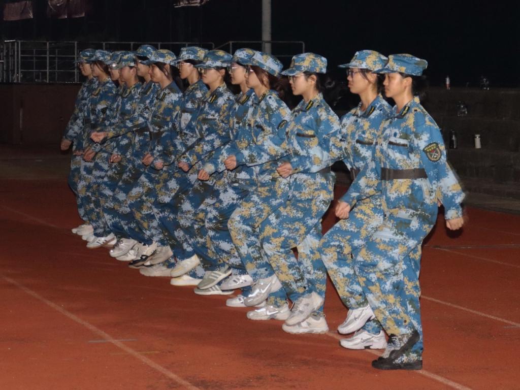 军训期间,新生们以钢铁意志投入各项训练。每日清晨按时集结,认真完成军姿、队列等基础科目练习;面对正午高温,始终保持规范动作,无人因疲劳退缩。夜间拉练环节,全体新生相互配合、整齐行进,以响亮的口号展现出良好的集体凝聚力。