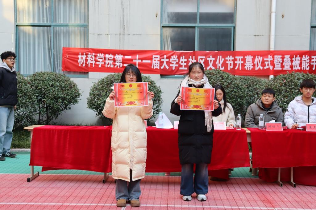 随后进行的叠被能手大赛,开展了“小试身手”“互帮互助一起来”“迎难而上”“班级趣味活动项目”四个项目,8支参赛队伍同台竞技。选手们动作利落、标准规范,将被子叠成整齐的“豆腐块”;拉拉队助威声此起彼伏,现场氛围热烈。经过多轮比拼,最终2025级金属二班斩获一等奖,高分子三班、金属三班获二等奖,高分子一班、金属一班、新能源二班获三等奖,高分子二班、新能源一班获优秀奖。