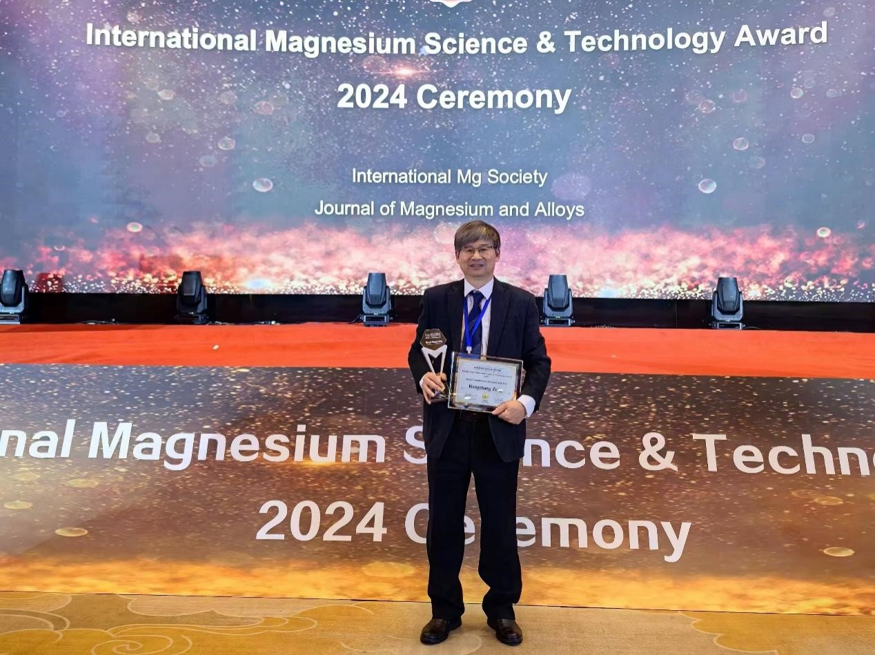 我院曾荣昌教授受邀参加此次会议并作题为“Exfoliation Corrosion of Magnesium-Lithium Alloys”的主旨报告,全面系统的介绍了课题组在Mg-Li合金体系下有关镁合金剥蚀机理所取得的研究进展。曾荣昌教授由于在镁合金腐蚀机理以及表面改性方面的杰出贡献被评审委员会授予2024年度特别创新贡献奖。同时获此奖项的还有中北大学张治民教授以及来自捷克共和国Charles University in Prague的Kristian Mathis教授。