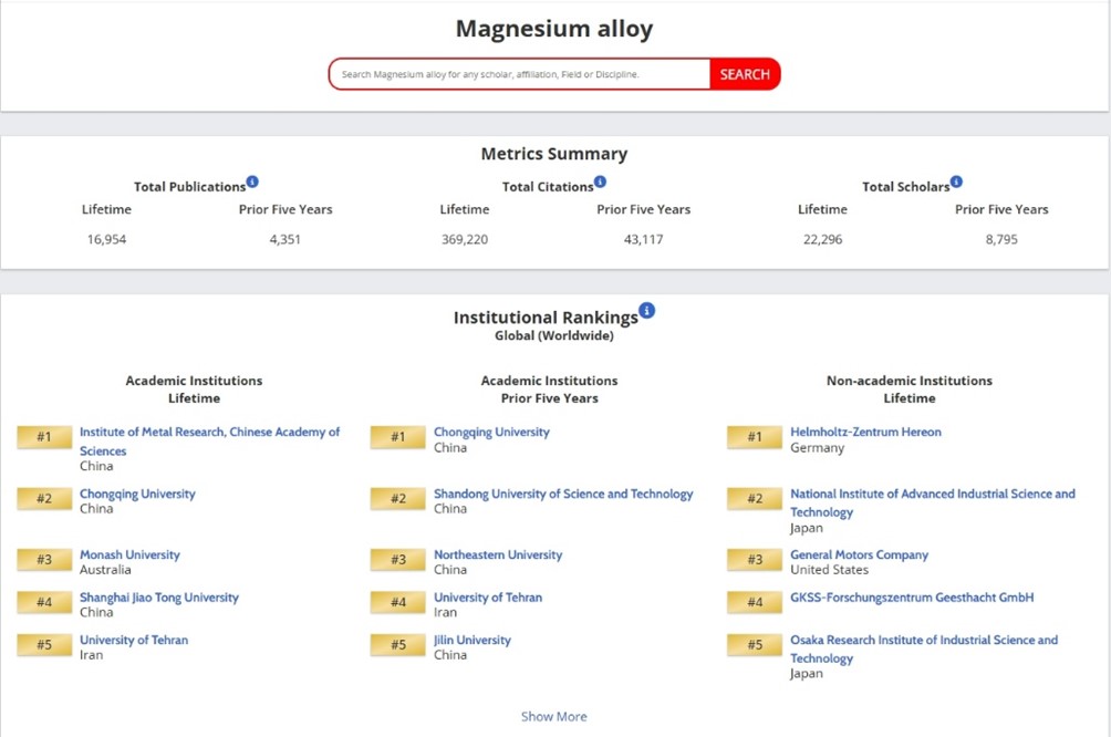 全球入选镁合金领域近5年学者榜单仅4人、机构榜单仅5个。必赢3003no1线路检测中心必赢3003no1线路检测中心曾荣昌教授位列第二位。同时,在镁合金机构排名中必赢3003no1线路检测中心同样位列全球第二。