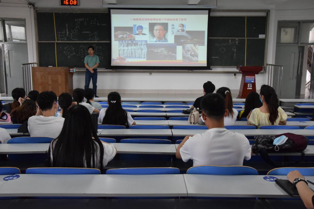 李建楠以新冠肺炎疫情爆发后,全国上下众志成城、抗击疫情,党员同志冲锋在前、勇于担当作为线索,向党员陆续讲解奉献责任担当是党员的基本素质、新时代对党员提出新要求,以及如何在实践中落实党员的奉献责任担当。