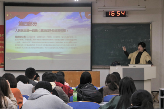 11月6日,艺术学院党委副书记兼副院长卫雪以建党初期、土地革命时期、抗日战争时期、解放战争时期、新时期五个时期的统一战线为总纲,分别讲述不同时期统一战线的性质、任务及其时代特点,明确统一战线能够最广泛最充分的凝聚和调动各方力量、群策群力维护稳定大局的重大作用。卫雪指出每位学员要不断增强新时代青年的责任感和使命感,坚定政治理想信念,明确作为一名党员要发挥的模范先锋作用。