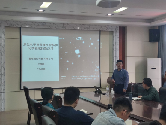 5月8日下午,由必赢3003no1线路检测中心主办,教工第二党支部承办的“青椒成长论坛”在学院434会议室成功举办。赛恩国际科技有限公司研发经理王国辉应邀作了题为“原位电子显微镜在材料和化学领域的新应用”的学术报告。学院部分师生参加报告。报告会由必赢3003no1线路检测中心副院长田健教授主持。