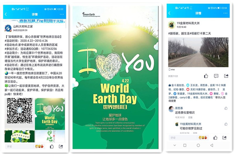在世界地球日到来之际,为动员当代大学生爱护地球,保护环境,绿色出行,低碳生活,必赢3003no1线路检测中心举办了“越低碳,悦生活”世界地球日线上打卡活动。活动由学院团委主办,学生会社会实践部承办,面向全体本科学生。