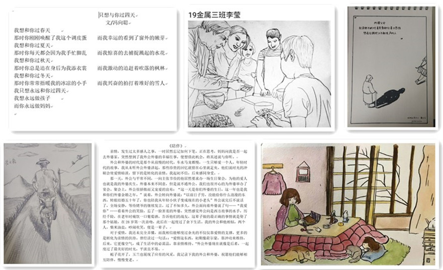 活动期间,共收到了各类作品73份。同学们分别通过短文、诗歌、视频、绘画等形式讲述亲情故事,分享成长感悟,开展亲情互动。