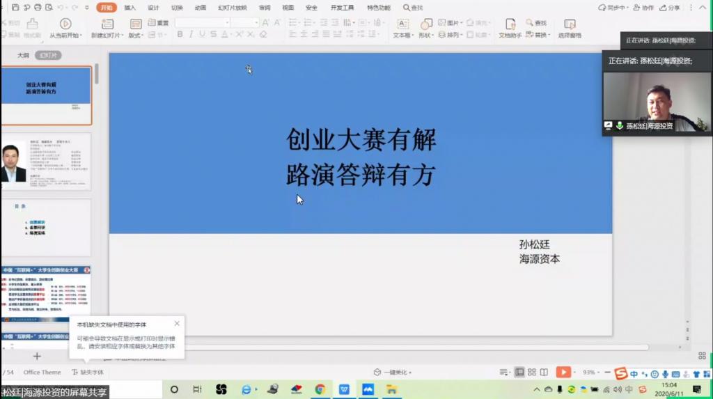 此次讲座主要分为创赛解析、备赛网评、路演策略三部分。孙松廷在第一部分就“互联网+”大赛的发展历程、今年大赛的变化、项目的立意选题、比赛的评审规则、项目的材料准备等方面做了详细解读,并对中国创新创业市场所面临的挑战做出理性分析,具体说明了参赛要求,介绍了大学生参加创新创业大赛的常见问题;第二部分重点讲解了大赛答辩逻辑陈述上的语言艺术,以及在备赛过程中的注意事项;最后,他向大家介绍了路演的重要性和路演方式的多样性,进一步为学生打开了创新创业竞赛的思路。