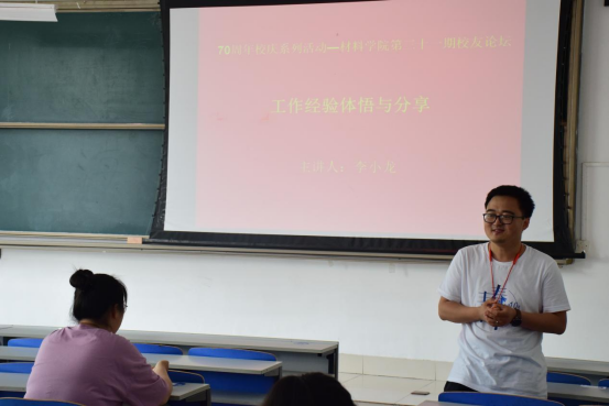 6月13日上午,我院于J14-109邀请金属材料工程专业2007级校友李勇、李小龙为我院本科生开展校友论坛。