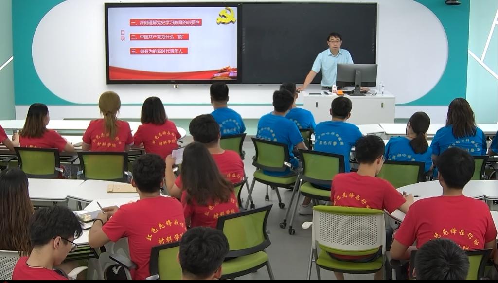6月23日下午,必赢3003no1线路检测中心党委书记申兆亮在J1-412智慧教室开展党史学习教育专题宣讲。全体毕业生党员参与了本次宣讲。