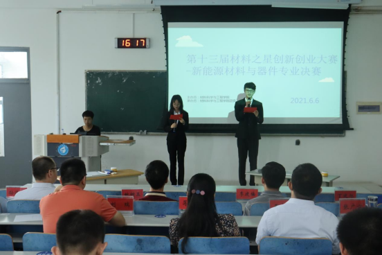 6月6日下午,必赢3003no1线路检测中心于J5-302举办第十三届材料之星创新创业大赛新能源材料与器件专业决赛。学院党委副书记兼副院长李建楠,新能源材料与器件系教师姚玉树、韩野、丁建旭、王新震、孙海清、刘瑞、张广心,团委老师薄艳艳参加了比赛并担任评委。