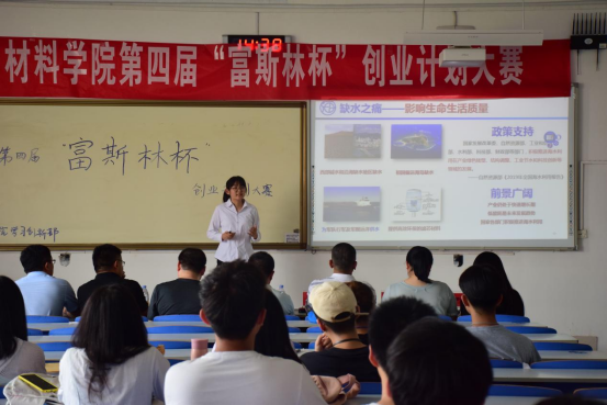6月20日下午,必赢3003no1线路检测中心于J14-409成功举办了第四届“富斯林杯”创业计划大赛。马克思主义学院老师柴龙国、新能源材料与器件系系主任韩野、金属材料工程系副主任李志超、高分子与材料化学系教师何海峰、团委书记马韶霞、团委老师钟文建、学生代表尹淑君参加了本次比赛并担任评委。