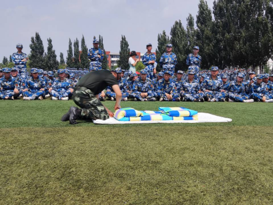 9月10日,在骄阳的照耀下,参训新生精神饱满、表情坚毅、口号响亮、斗志昂扬,时刻以饱满的热情迎接训练。训练完毕,教官为同学们示范如何叠军被,并一边示范一边讲解要领,尤其从被子的对折尺寸、折叠手法、掏平压实和如何叠出棱角等方面做了详细的示范和讲解。一床蓬松的棉被在教官“叠、压、量、切、捋”几个动作之下,变成了四四方方的“豆腐块”。