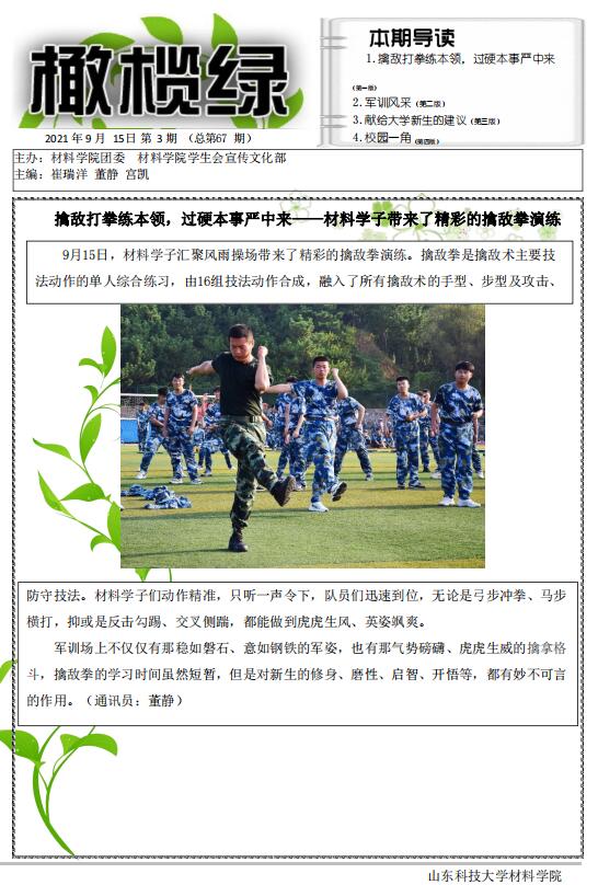 上一条:必赢3003no1线路检测中心军训特刊《橄榄绿》彩色2021年第四期(总第68期) 下一条:【军训系列报道四】军训场上洒汗水,材料学子展风采——新生军训进行时