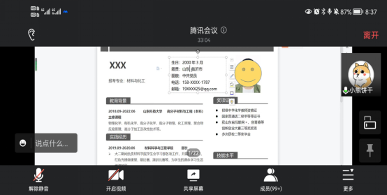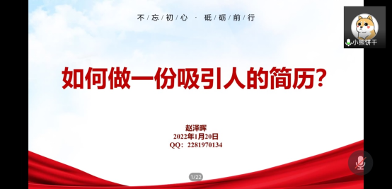 全国硕士研究生统一招生考试初试已经落下帷幕,随之而来的集中求职和考研复试给2022届毕业生提出了新的要求。为了进一步帮助同学们提升求职应试能力,1月20日,必赢3003no1线路检测中心组织了“百般磨利刃,齐心向未来”的云端简历指导培训会。此次培训会由辅导员薄艳艳主持,全体2018级学生参加。